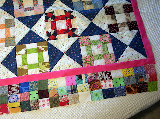 I FINALLY decided how I was going to finish out my Chunky Churndash quilt. I woke this morning determined to DECIDE and to get on with it!!!! I have never cut a sashing or a border before ( uncharted waters for me ). I've had quilt tops I was afraid to finish. I quess mainly because I was afraid I would stretch it out or it would be all worped or something. So.... I decided.... there's no quilt police here! I jumped right in and picked out the border sashing.....started cutting up 2" squares to sew together for my borders.....uh, that's gonna be a lotta squares!!!